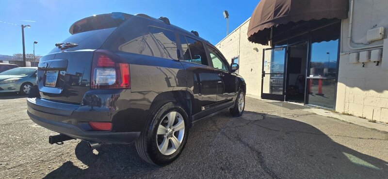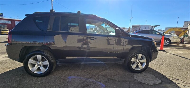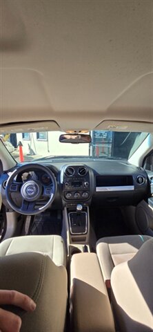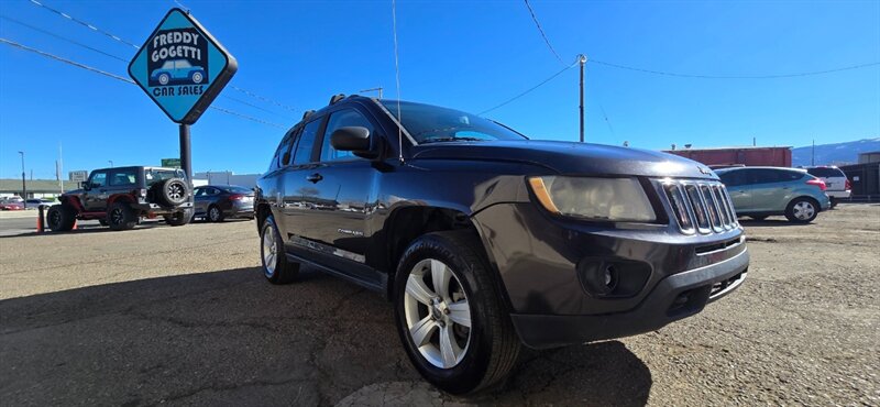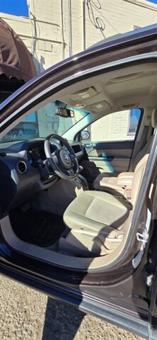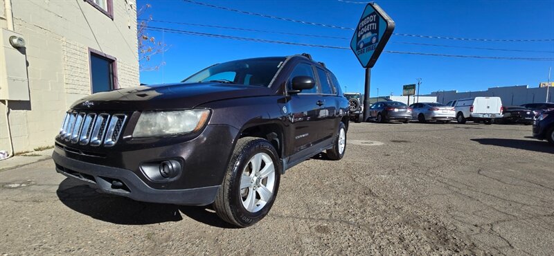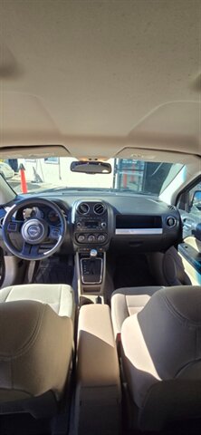 2014 Jeep Compass Sport — powered by a spry 2.4L I4 with 172 hp and 165 lb-ft of torque, this compact SUV gives you no-nonsense utility with a wink. Factory-standard goodies include seating for five in durable cloth with a 60/40 split-fold rear seat, manual air conditioning, tilt steering, cruise control, power windows and locks with remote keyless entry, an AM/FM/MP3 stereo with auxiliary/USB input and steering-wheel audio controls, 16-inch wheels and roof rails for weekend gear. Safety comes serious: anti-lock brakes, electronic stability and traction control, front and side-impact airbags plus full-length side-curtain airbags, and tire-pressure monitoring. No frills, plenty of attitude — and built to get you where you’re going without drama.