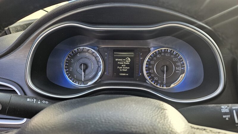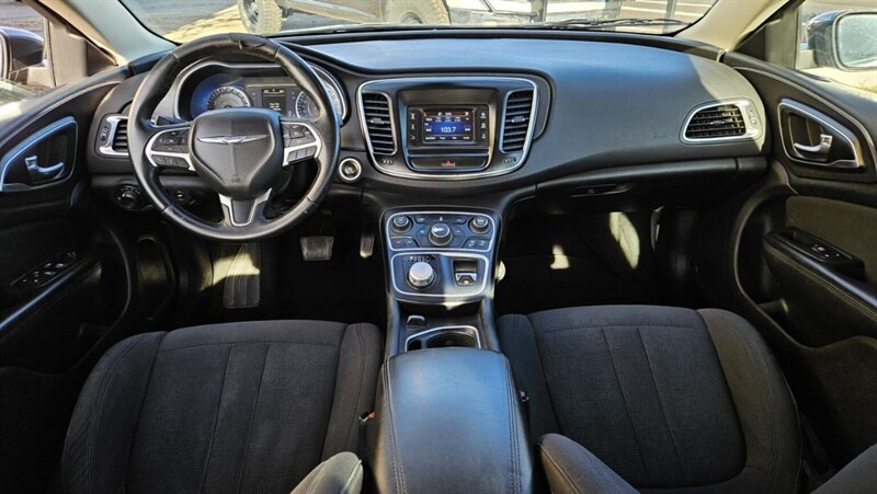 Sassy, smart and surprisingly thrifty — this 2016 Chrysler 200 Limited in Granite Crystal Metallic Clear Coat with Black cloth interior packs a 2.4L I4 (184 hp / 173 ft-lb), under 104k miles (avg <10k/yr) and fuel economy of 23 city / 36 highway — overall excellent condition. Factory-installed features include the full Uconnect suite (Uconnect 8.4AN w/ nav plus Uconnect 3.0/8.4A connectivity), power express open/close sunroof, Blind Spot & Cross-Path Detection, ParkSense rear park assist, power 8-way driver seat, premium black cloth seating, 18 x 8.0 satin silver aluminum wheels, daytime running lamps, PZEV engine/emissions equipment and conveniences from the Comfort, Convenience, Driver Assist, Travel & Safety and MOPAR packages. Extras like MOPAR Connect and four additional key fobs finish the package — stylish, safe and ready to roll.