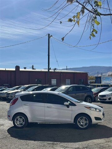 Introducing the 2017 Ford Fiesta SE, a compact sedan that combines efficiency with style. Powered by a responsive 1.6L I4 engine, this vehicle delivers a balanced performance for both city and highway driving. The exterior is finished in a sleek White, while the Black interior offers a modern and comfortable atmosphere.